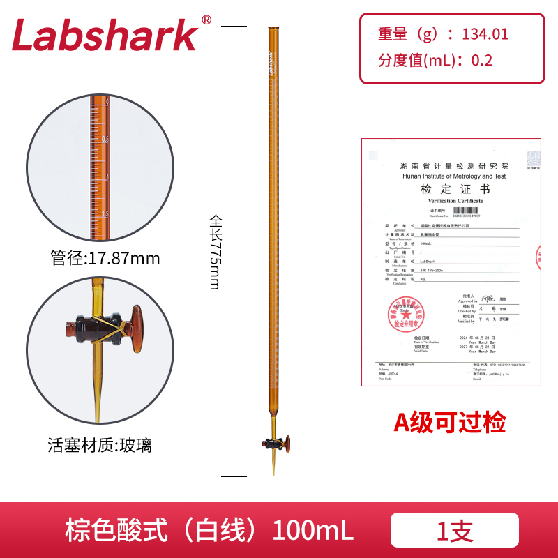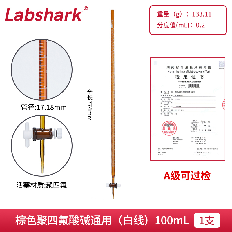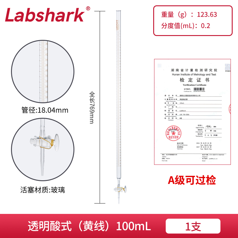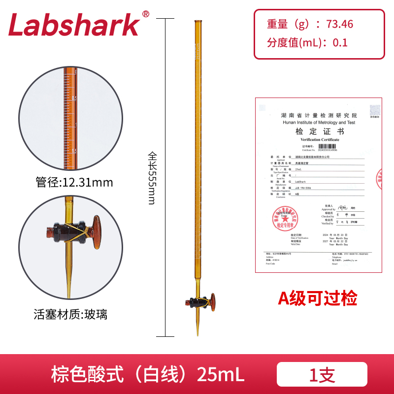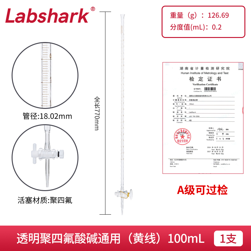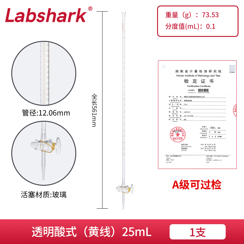 聚四氟透明酸式(刻度藍(lán)色) 25ml 130113029