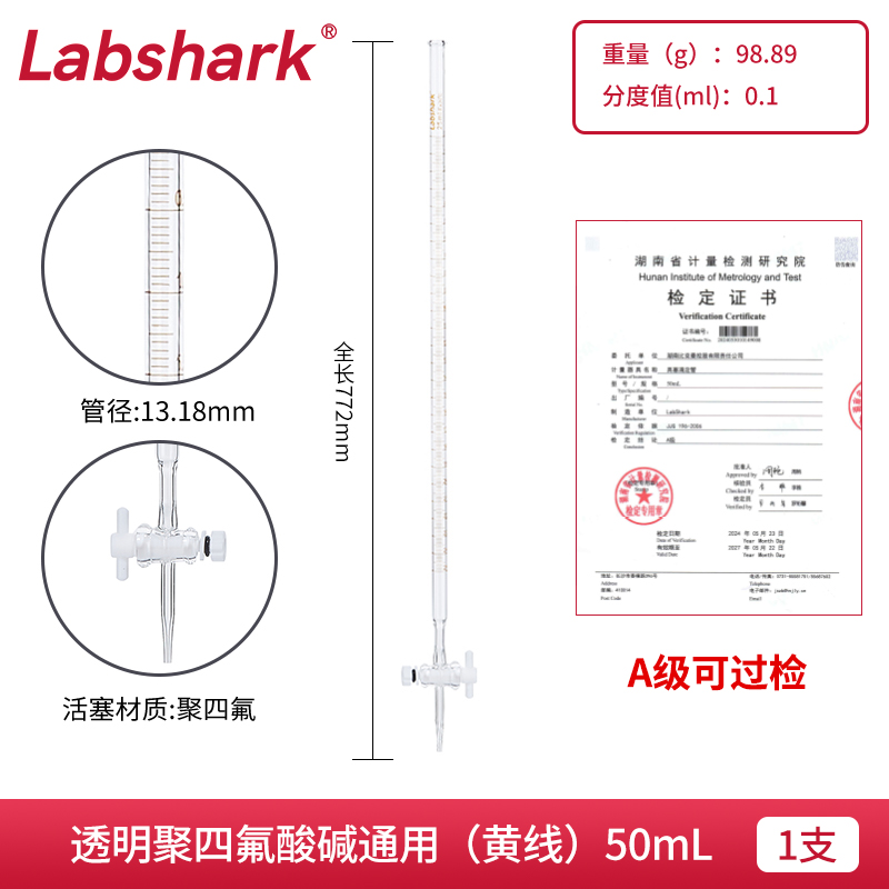 聚四氟透明酸式(刻度藍(lán)色) 50ml 130113030