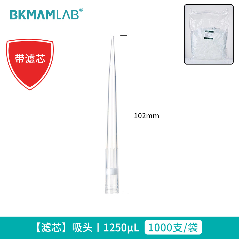 【帶濾芯低吸附】無菌1250uL(102mm) 1000支/袋 110201317