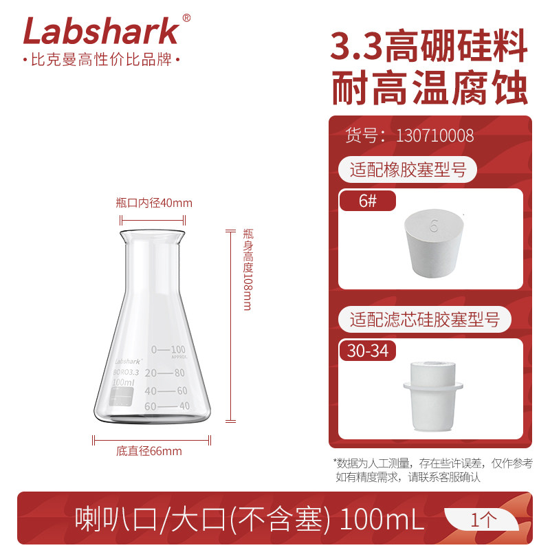 喇叭口/大口100mL(高硼硅)(獨立包裝) 130710016