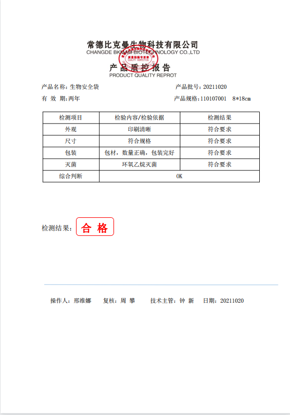 生物安全袋 透明(PE復(fù)合膜材質(zhì) ) 8x18 100個裝 110107001 20211020
