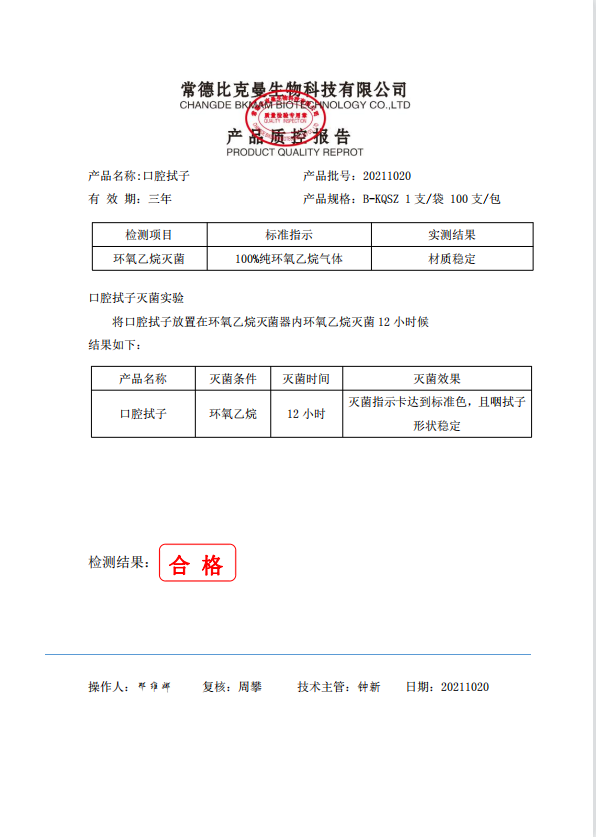 比克曼生物 口腔拭子(獨立裝) 1支袋 100支包 B-KQSZ 20211020
