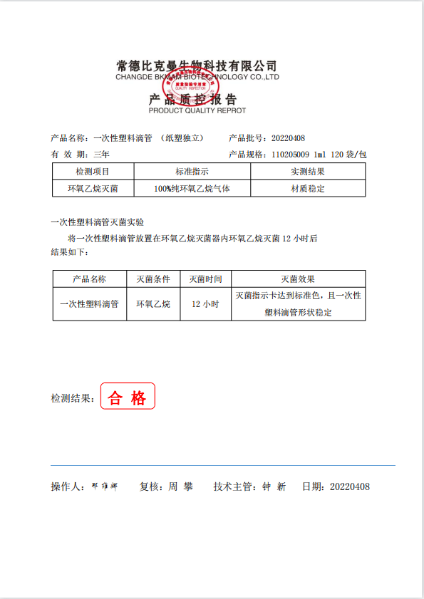 紙塑滴管 (紙塑獨(dú)立) 1ml 1支袋 120袋包 110205009 20220408
