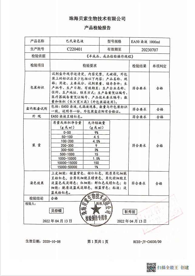 貝索 巴氏染色液 EA-50 1000ml BA4036A C220401