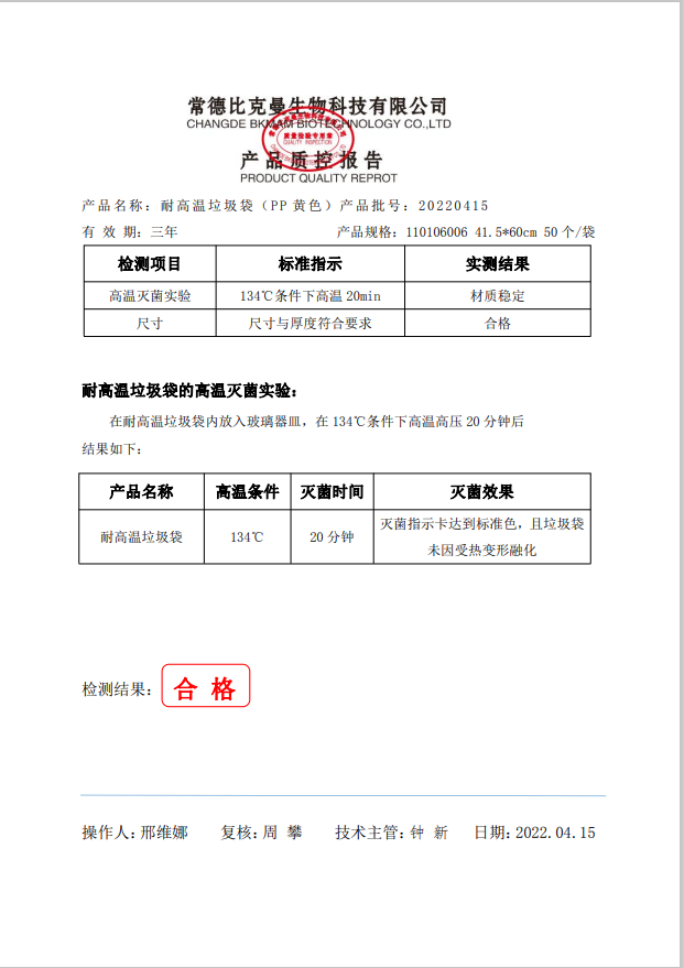耐高溫垃圾袋生 黃色 41.5x60cm (PP復(fù)合膜材質(zhì)) 50個(gè)袋 110106006 20220415
