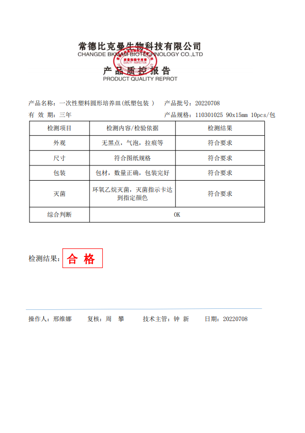 一次性圓形塑料培養(yǎng)皿 (紙塑包裝) 90x15mm 10個(gè)袋 110301025 20220708