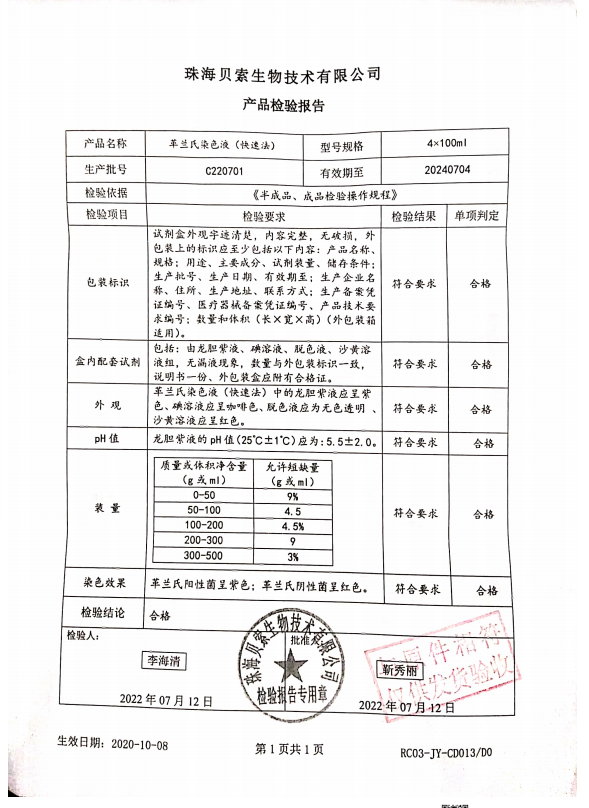 貝索 革蘭氏染色液(快速法) 100ml4盒 C220701