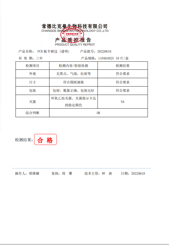 比克曼生物 PCR板半裙邊 (透明) 0.2ml 10片盒 110404025 20220618