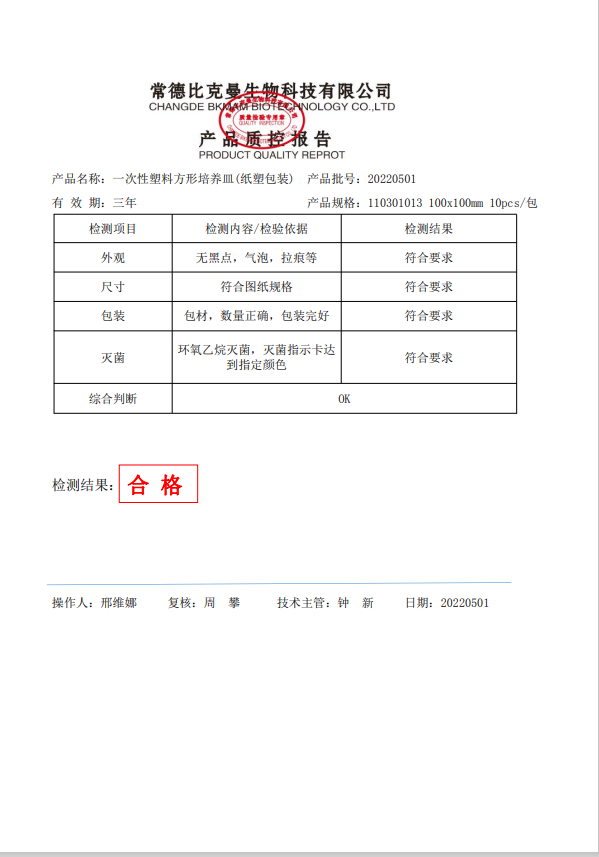 一次性方形塑料培養(yǎng)皿 (紙塑包裝)100x100mm 10個袋 110301013 20220501