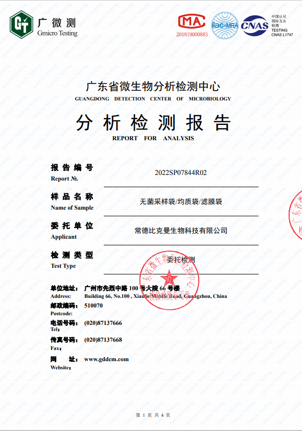 第三方報(bào)告 2022SP07844R02-無(wú)菌采樣袋均質(zhì)袋濾膜袋20220708