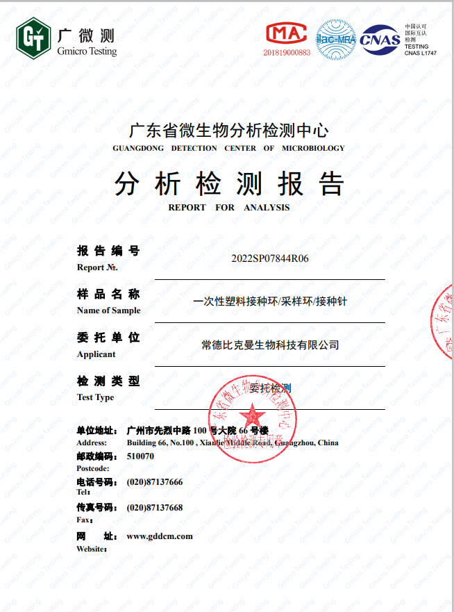第三方報(bào)告 2022SP07844R06-一次性塑料接種環(huán)采樣環(huán)接種針20220708