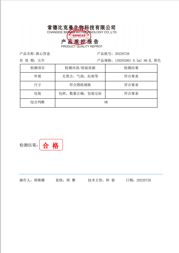 BKMAM 離心管盒 0.2ml 96孔 (黃色) 130202001 20220726
