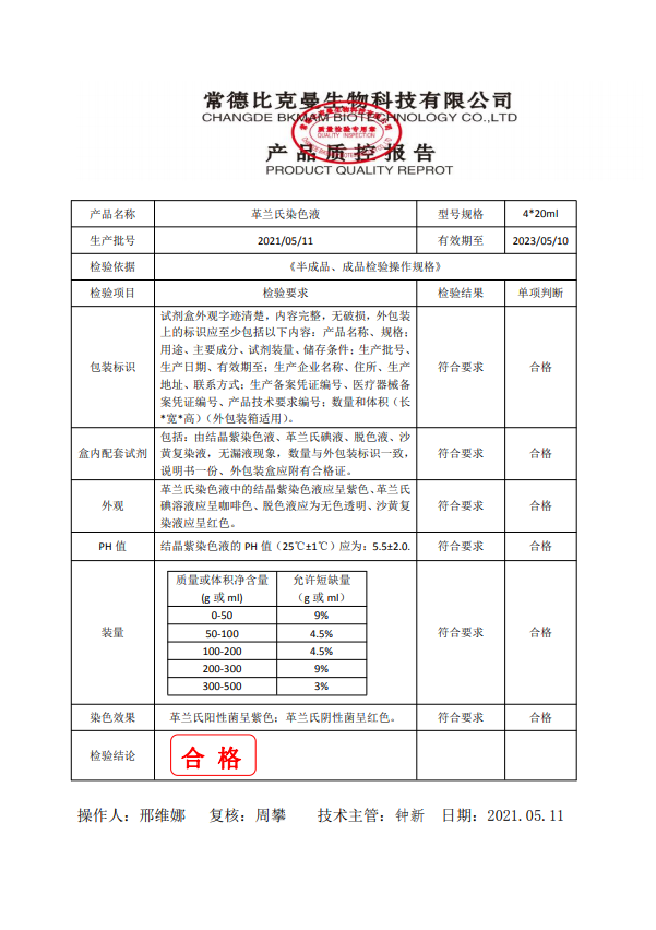 比克曼生物 革蘭氏染色液 20ml4支裝 110703003 20210511