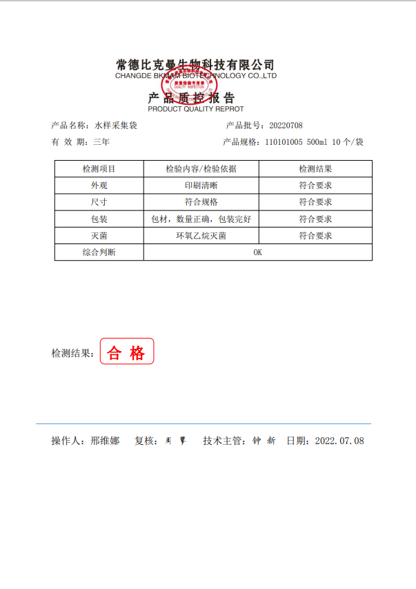 水樣采集袋 500ml 10個(gè)袋 110101005 20220708