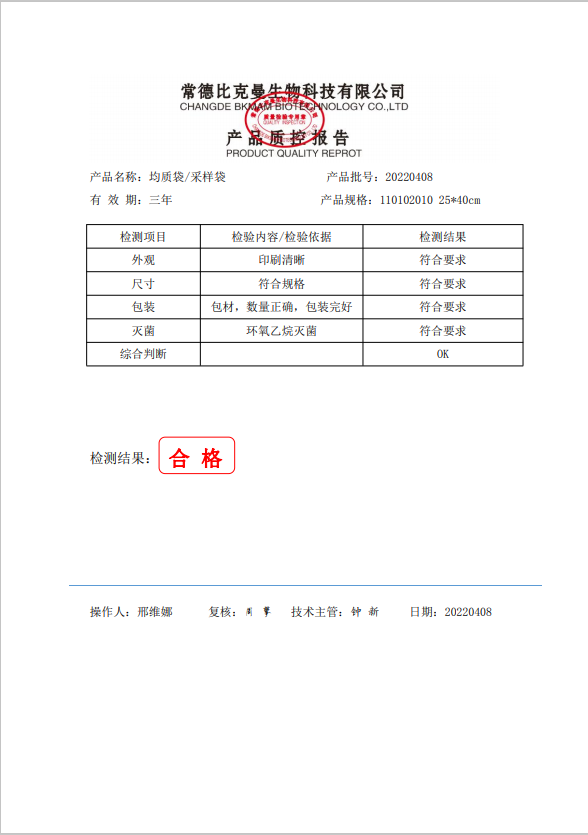 立式無菌采樣袋 25x40 (帶壓條) 50個(gè)裝 110102010 20220408