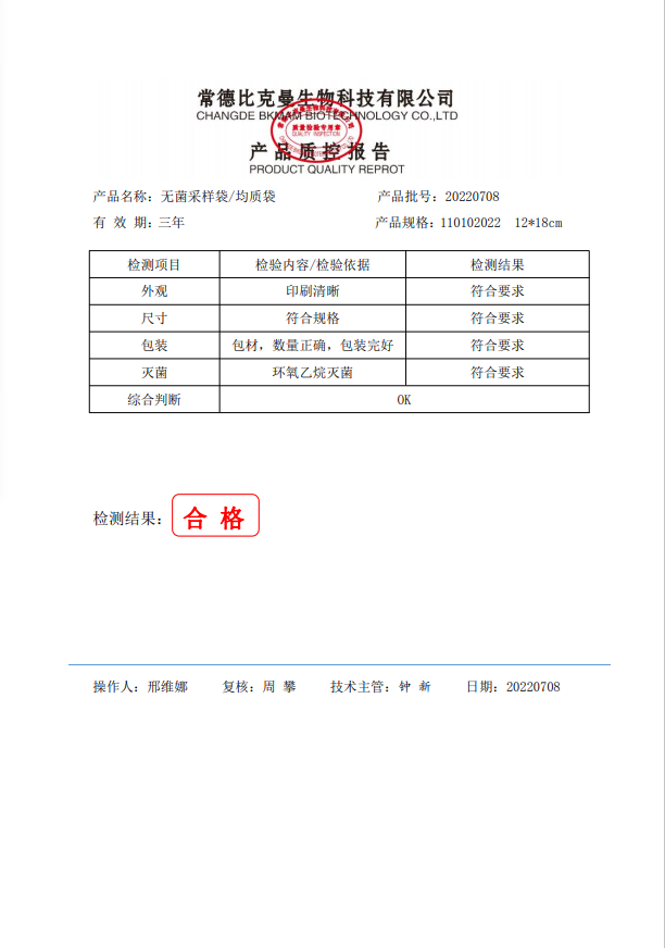 無(wú)菌采樣袋 12x18 (帶壓條) 100個(gè)裝 110102022 20220708