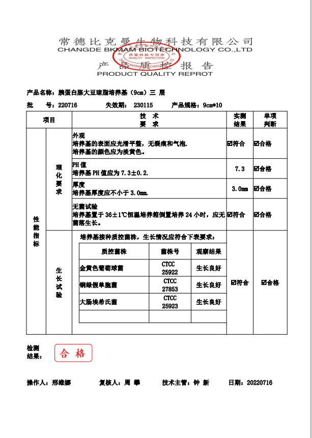 比克曼生物 胰蛋白胨大豆瓊脂(三層包裝) TSA瓊脂平板 9cm 10個袋 110704022 20220716