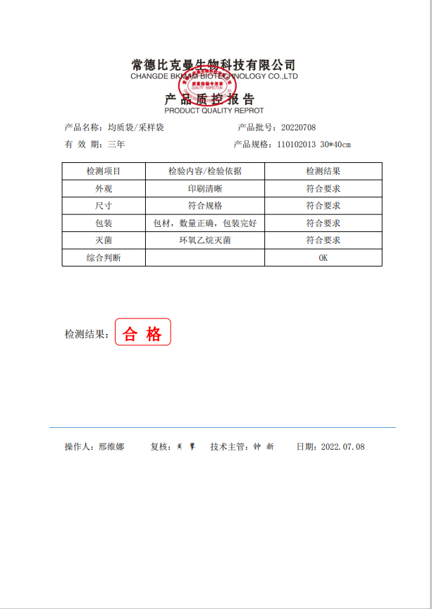 立式無菌采樣袋 30x40 (帶壓條) 50個裝 110102013 20220708