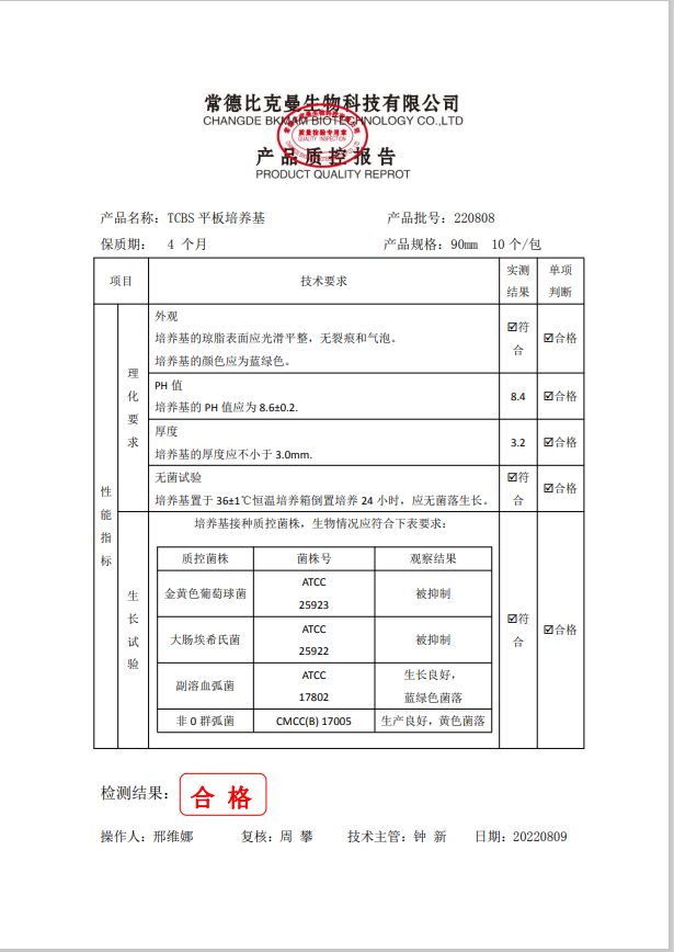 比克曼生物 (二層包裝)TCBS瓊脂平板9cm(弧菌板) 110704030 220808