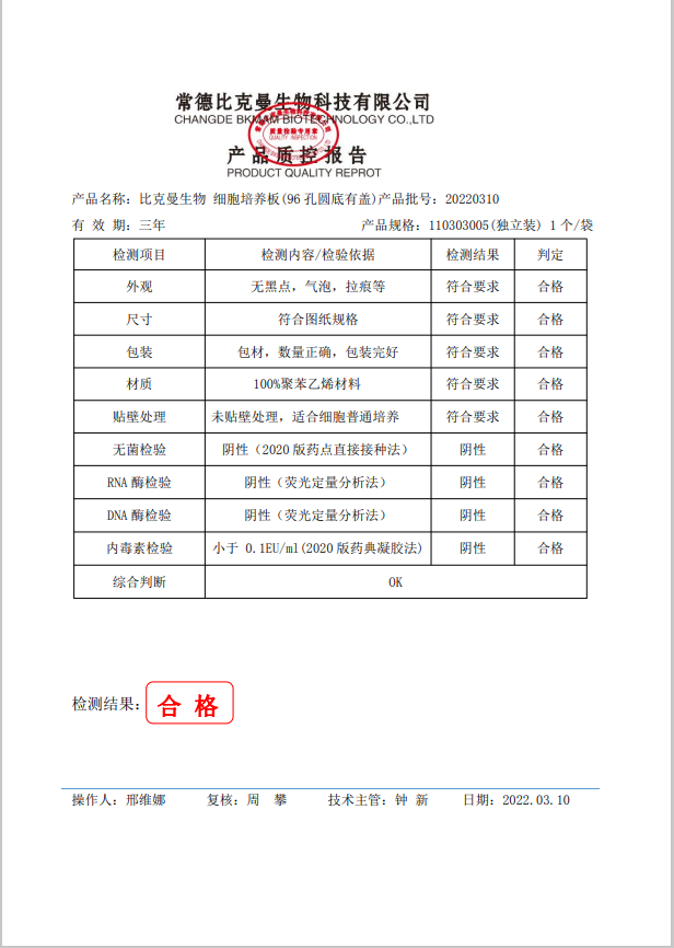 比克曼生物 細胞培養(yǎng)板(96孔圓底有蓋)(獨立裝) 1個培裝 110303005 20220310