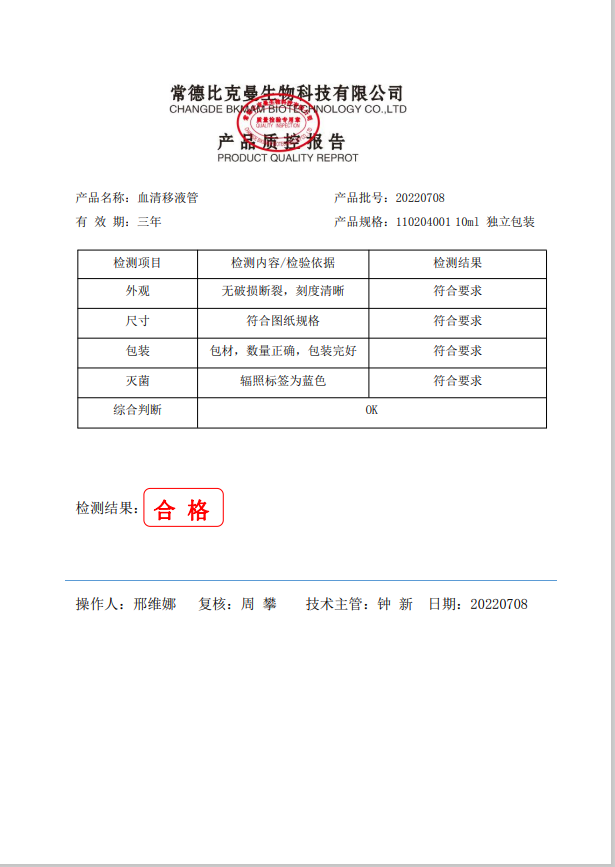 比克曼生物 血清移液管 (獨(dú)立裝) 10ml 50支袋 110204001 20220708
