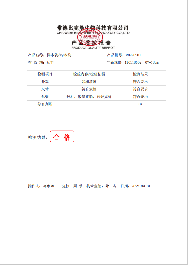 比克曼生物 樣本袋 07x18cm 100個(gè) 袋 110118002 20220901