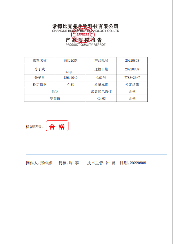 比克曼生物 納氏試劑 100ml 瓶 110702070 20220808