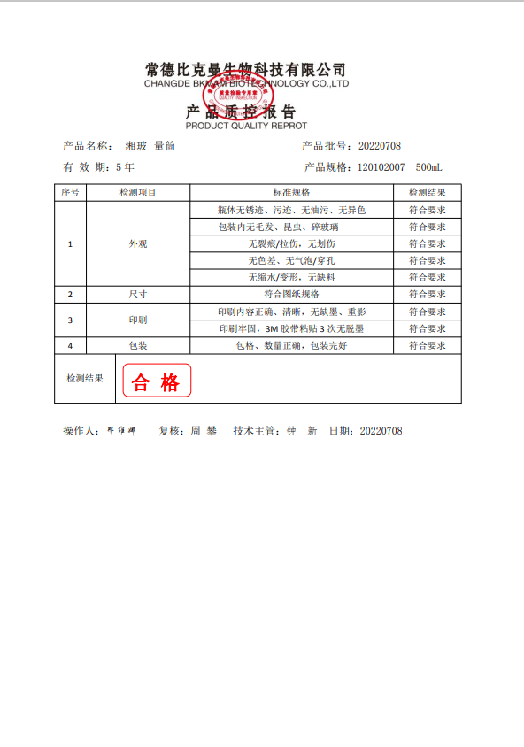 湘玻 量筒 500ml 120102007 20220708