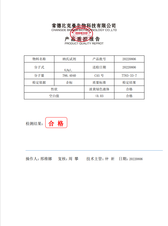 比克曼生物 納氏試劑 500ml 瓶 110702071 20220806