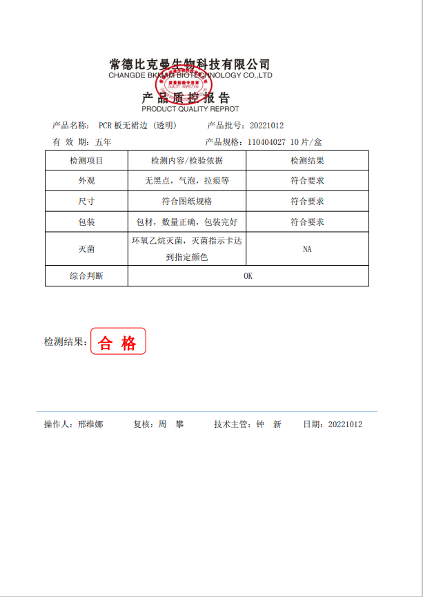 比克曼生物 PCR板無裙邊 (透明) 0.2ml 10片盒 110404027 20221012