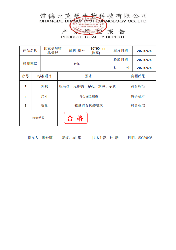 比克曼生物 稱量紙 90x90mm(特厚) 110415007 20220926