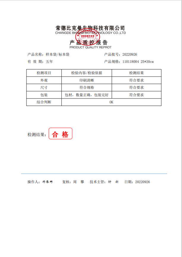 比克曼生物 樣本袋 25x30cm 100個 袋 110118004 20220926