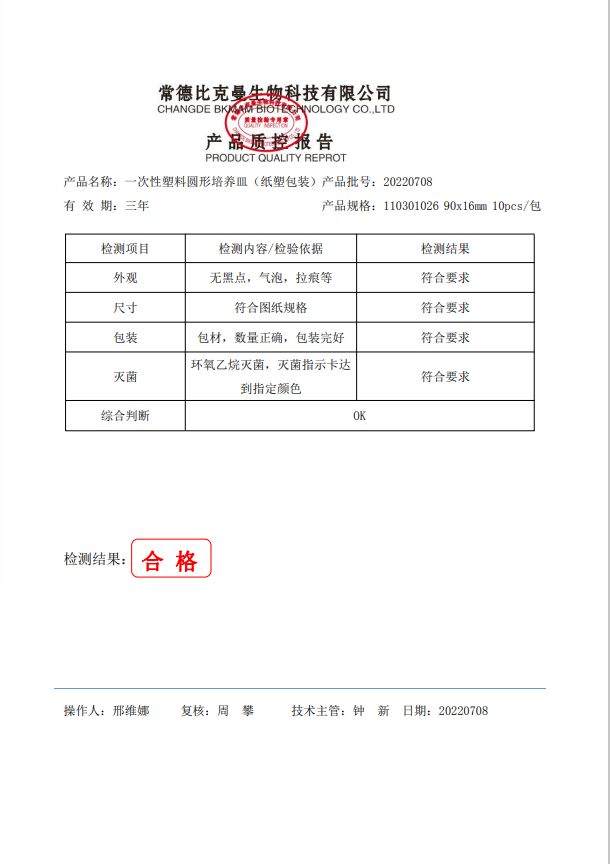 一次性塑料圓形培養(yǎng)皿 (紙塑包裝) 90x16mm 10個(gè)袋 110301026 20220708