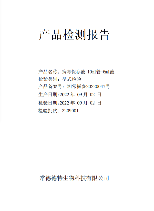 德特 病毒保存液 10ml管+6ml液體(C-03滅活型) 質(zhì)檢報(bào)告-生產(chǎn)批號(hào)2209001 生產(chǎn)日期 20220902