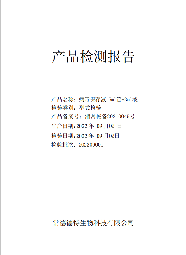 德特 病毒保存液 5ml管+3ml液體(C-03滅活型) 質(zhì)檢報告-生產(chǎn)批號 202209001 生產(chǎn)日期 20220902