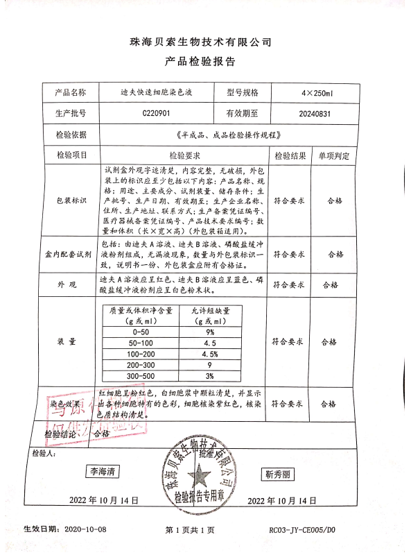 貝索 迪夫快速細(xì)胞染色液 250mlx4 BA4100 C220901
