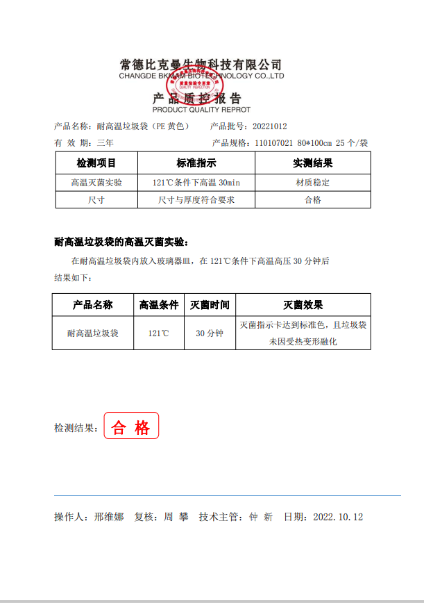 110107021 耐高溫垃圾袋 黃色 80x100cm (PE復(fù)合膜材質(zhì)) 25個袋 20221012