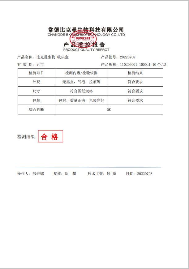 110206001 吸頭盒 1000ul 10個(gè)盒 20220708