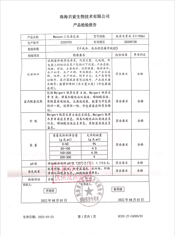 貝索 Masson三色染色液 5x100ml盒 BA4079B C220703