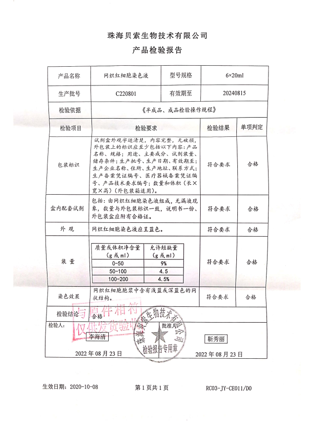 貝索 網(wǎng)織紅細胞染色液 6x20ml BA4004 C220801