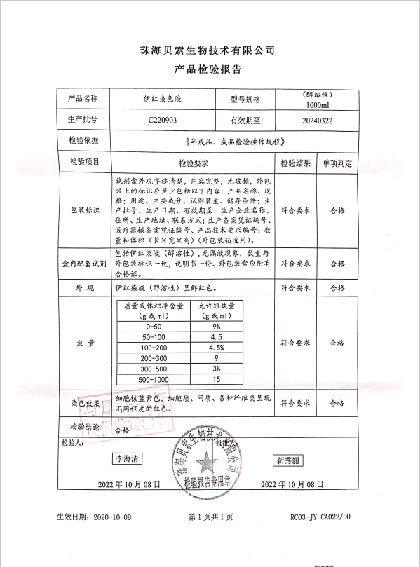 貝索 伊紅染液(醇溶性) 1000ml BA4022 C220903