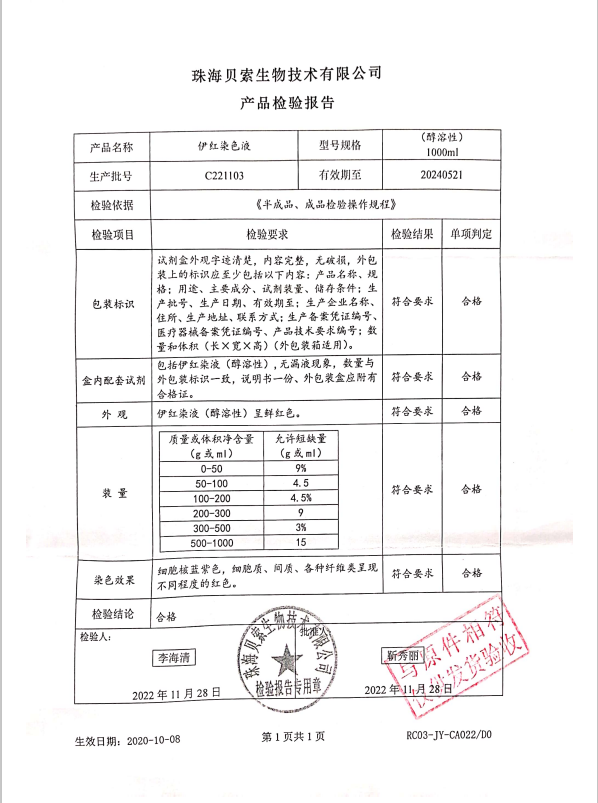 貝索 伊紅染液(醇溶性) 1000ml BA4022 C221103