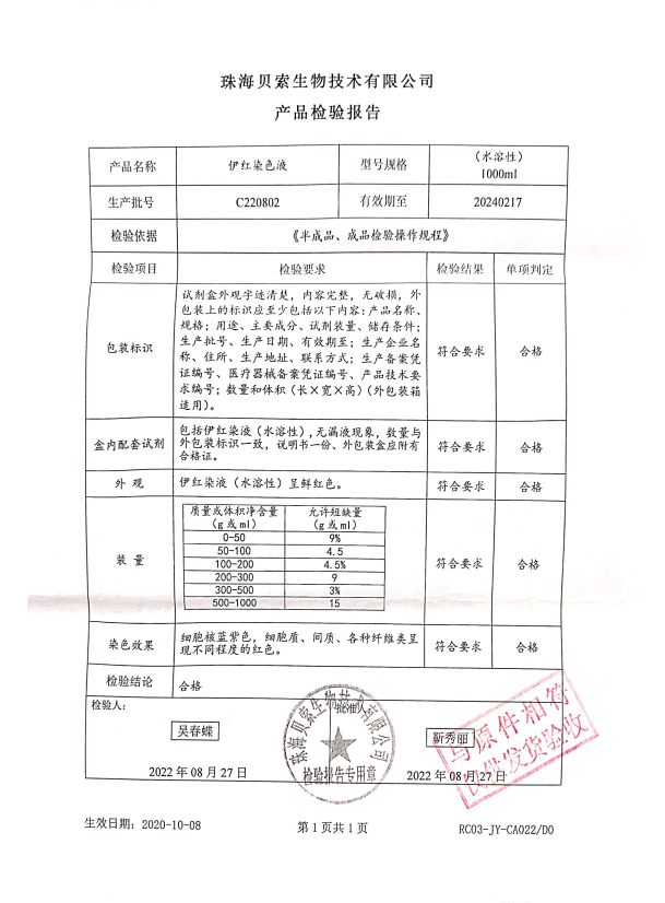 貝索 伊紅染色液(水溶性)1000ml BA4024 C220802