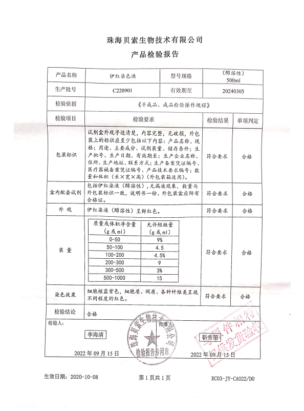 貝索 伊紅染液(醇溶性) 500ml BA4099 C220901