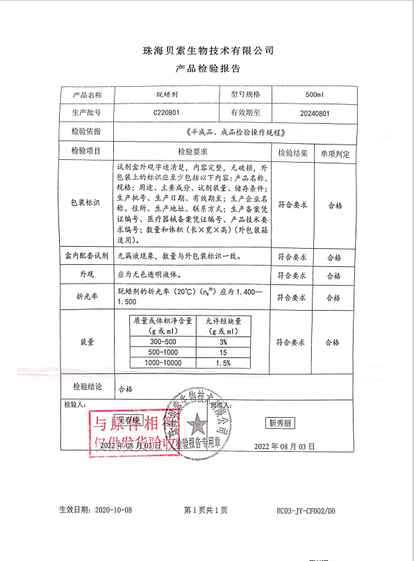 貝索 脫蠟劑 500ml BA7002C C220801