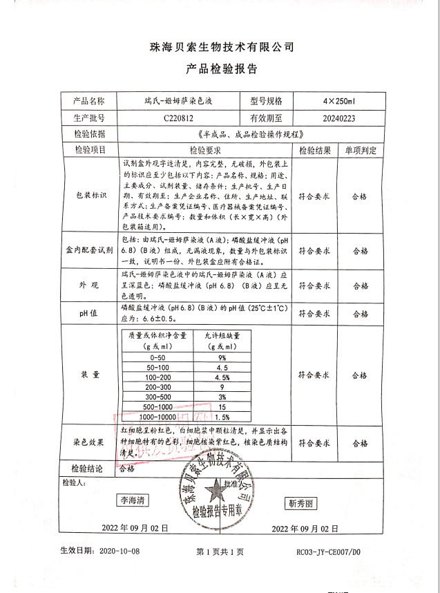 貝索 瑞氏-姬姆薩染色液 250mlx3 BA4010 C220812