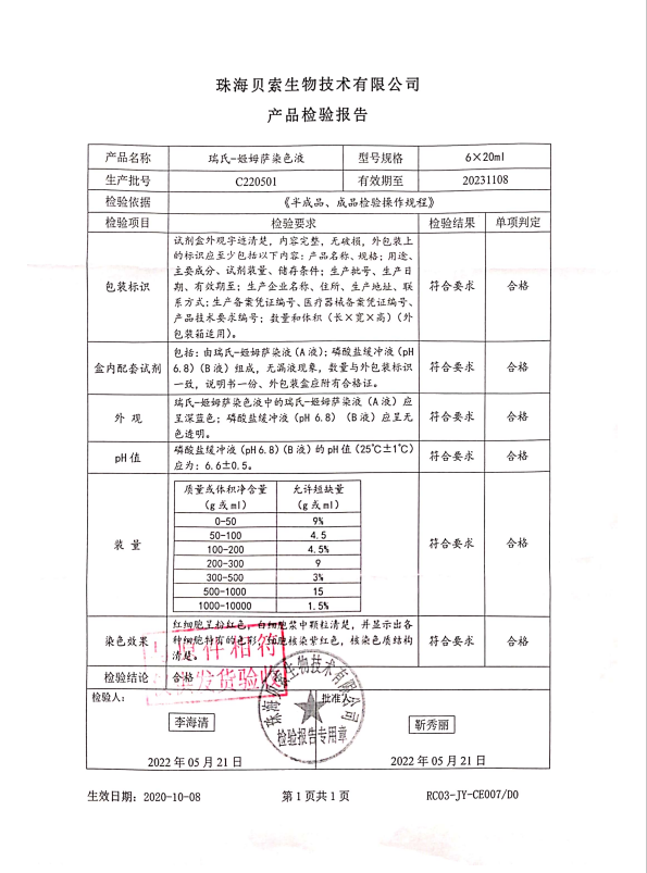 貝索 瑞氏-姬姆薩染色液 20mlx6 C220501