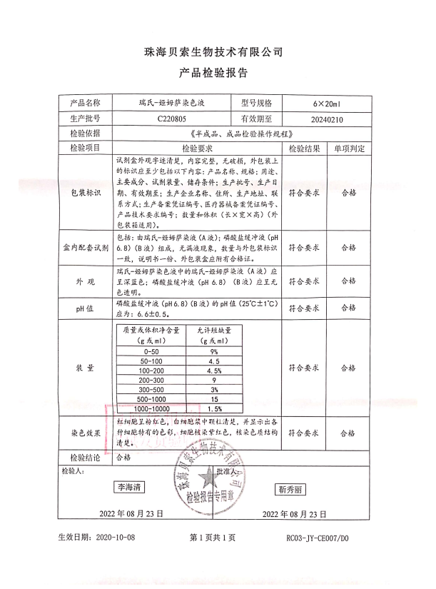 貝索 瑞氏-姬姆薩染色液 20mlx6 C220805