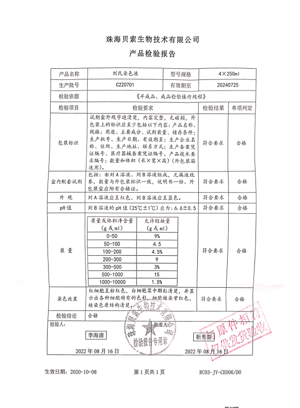 貝索 劉氏染色液 4x250ml BA4000 C220701