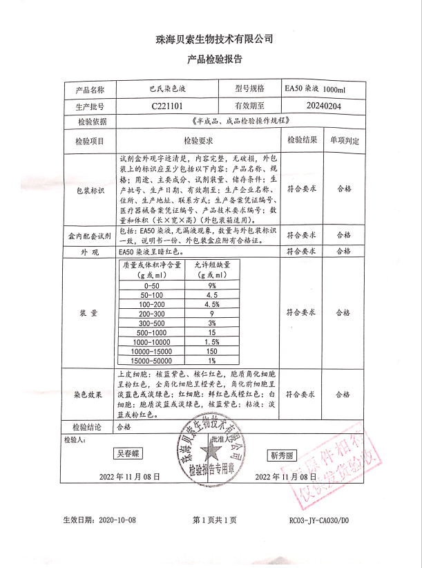 貝索 巴氏染色液 EA-50 500ml BA4033A C221101
